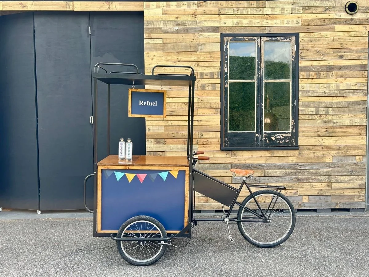 Available in various colours, our Tricycle with Canopy is chic and practical. This flexible product can be used inside or outside, stationary or mobile, as a centrepiece, side bar or complementary prop.